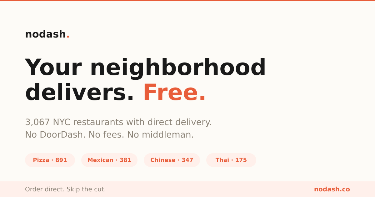 3,133 NYC restaurants with direct delivery — no apps, no fees, no middleman.